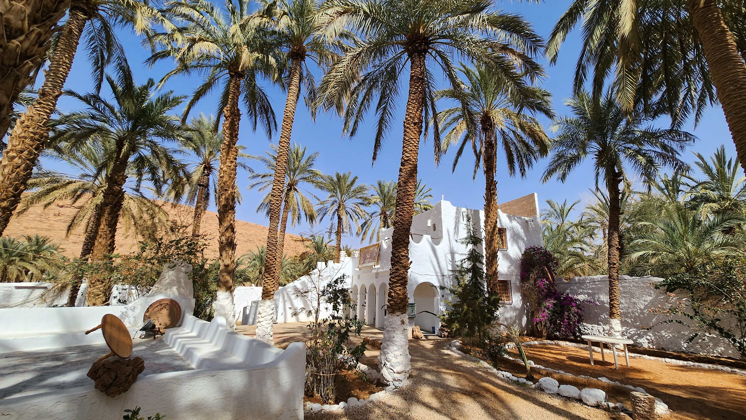 Flug mit Air Algérie von Frankfurt nach Algier, 15:30 – 17:20 Uhr, Weiterflug nach Ghardaia, 18:30 – 20 Uhr – Gepäck ins Flugzeug nehmen, Sie brauchen ja nicht viel. Ghardaia wurde aufgrund der einzigartigen Architektur in das UNESCO-Weltkulturerbe aufgenommen. Abendessen und Übernachtung in der wunderschönen Auberge Akham im Palmenhain. (A).