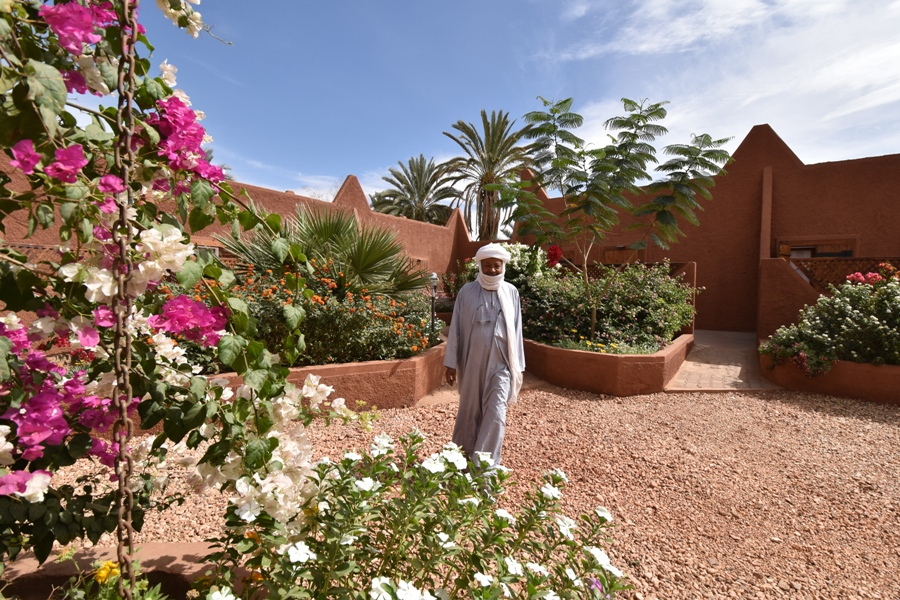 Direkter Flug von Ghardaia (einziger der Woche) nach Tamanrasset in einem modernen Airbus oder Boeing, aktuell ab 23:35 Uhr. Ankunft um 01:15 Uhr, Fahrt von 20 km südlich nach Tamanrasset, Übernachtung im schönen Hotel Caravanserail am Ortsrand im saharischen Stil.